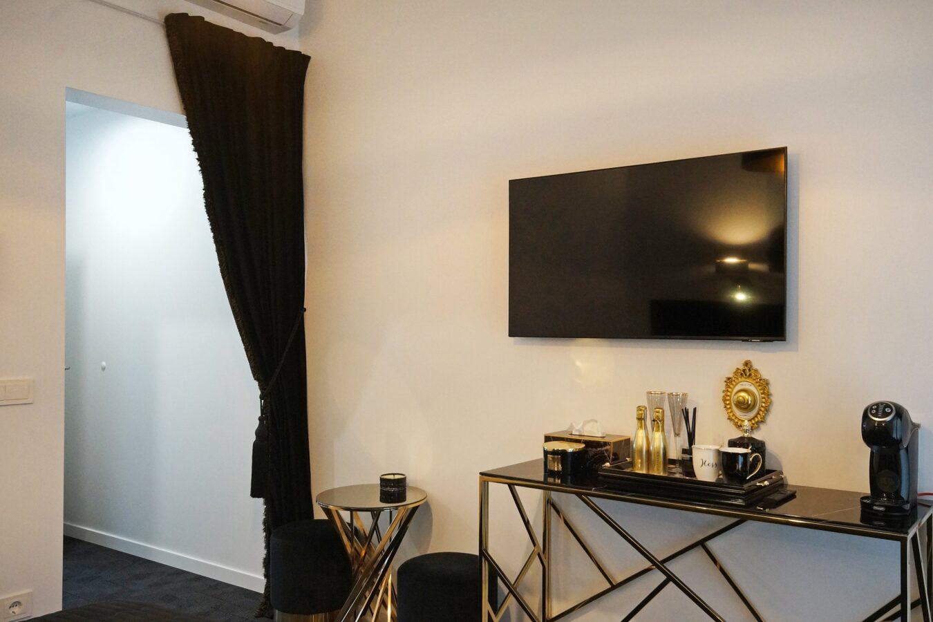 Indulge in the elevated luxury of our Superior Double Room, offering an even more expansive and exquisitely appointed sanctuary. This room builds upon our signature blend of contemporary elegance and distinctive boutique charm, presenting an enhanced sense of space and refined ambiance. Discover meticulous design details and a heightened level of comfort, with modern furnishings that exude sophistication and thoughtfully curated artwork adding a unique, artistic flourish. A supremely comfortable double bed, dressed in the finest quality linens, awaits to deliver an unparalleled night’s rest. The generously proportioned bathroom continues this commitment to luxury, featuring a refreshing walk-in shower and an exquisite selection of premium toiletries. Beyond these comforts, you’ll find convenient amenities such as a high-end coffee machine and the subtle gleam of elegant marble accents, all contributing to an enriched stay. With its spacious layout, elevated touches, and unwavering attention to detail, our Superior Double Room provides the ultimate retreat for discerning leisure and business travelers seeking an exceptional and stylish experience.